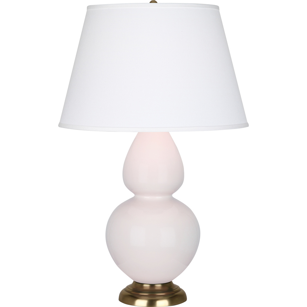 Rose Water Glazed Ceramic with Antique Brass Finished Accents Double Gourd Table Lamp with Pearl Dupioni Fabric Shade - Our Double Gourd collection features a simple but gracefully curving silhouette. Available in a wide array of vibrant colors and several different base finishes.