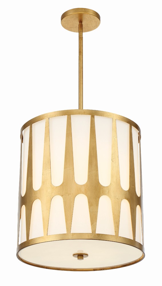Makes a statement with its graphic metal frame surrounding a white fabric drum shape.
