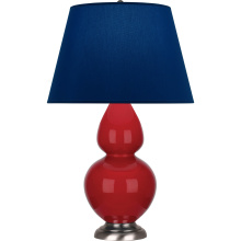 Ruby Red Glazed Ceramic with Antique Silver Finished Accents Double Gourd Table Lamp with Bright Blue Fabric Shade with Gray Lining - Our Double Gourd collection features a simple but gracefully curving silhouette. Available in a wide array of vibrant colors and several different base finishes.