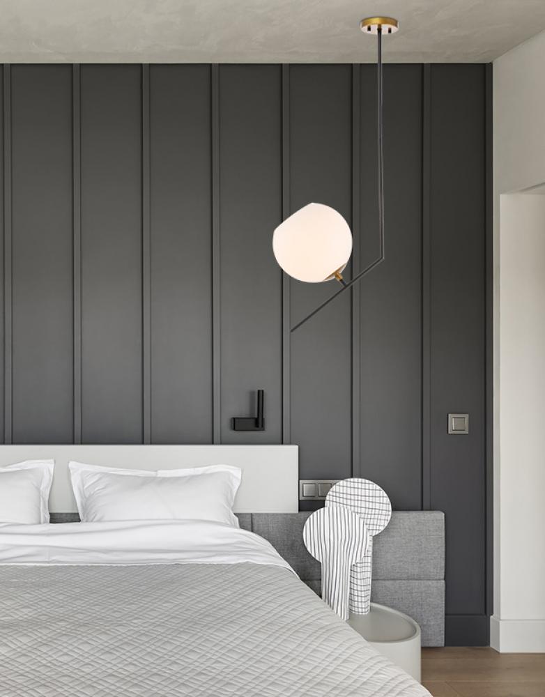 Contemporary aesthetic featuring sleek lines broken up by the bulbous shade