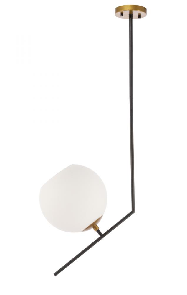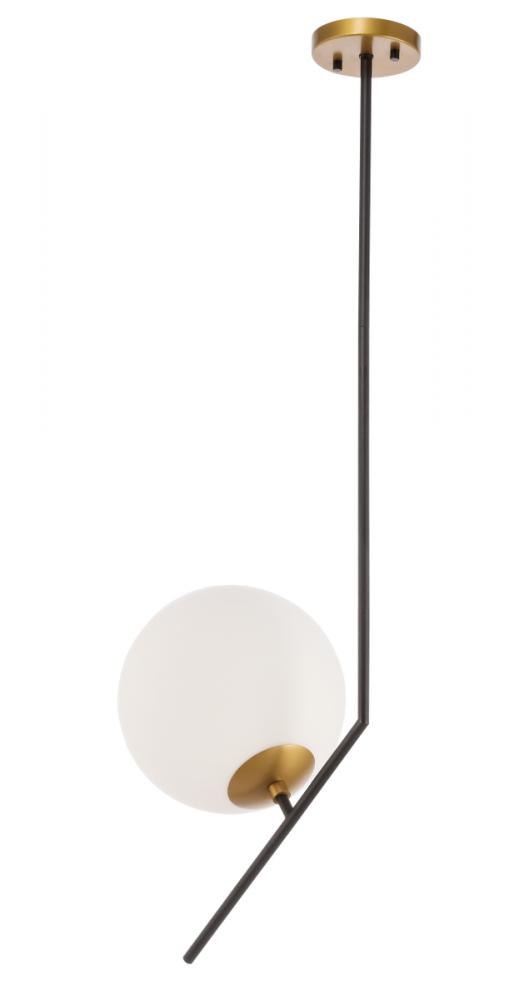 The Ryland Collection Pendant adds sophisticated elegance while still maintaining playful whimsy. The clean lines of the adjustable rod supports the light that is enclosed within the white frosted ball shade. Available in a brass, chrome, and two-toned black and brass finish, this fixture will add contemporary freshness to any room, your guests sure to notice your impeccable tastes in design (light bulbs not included).