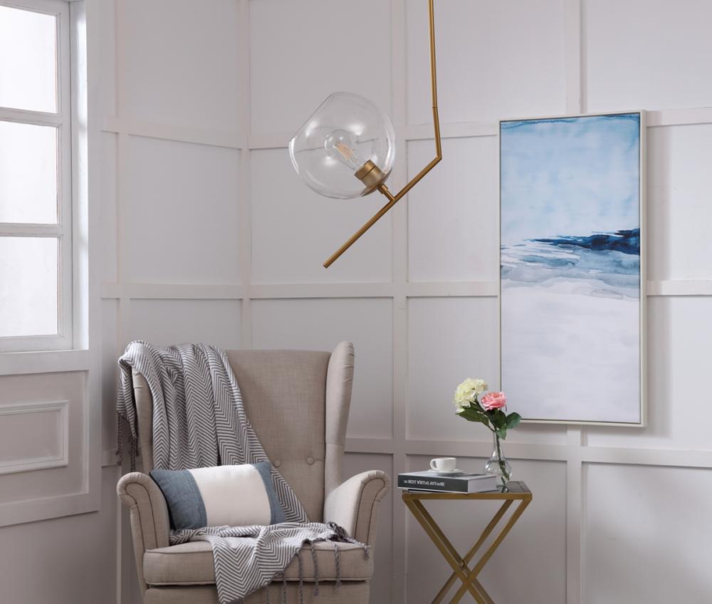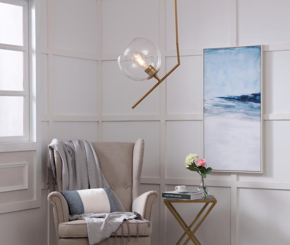 The Ryland Collection Pendant adds sophisticated elegance while still maintaining playful whimsy. The clean lines of the adjustable rod supports the light that is enclosed within the clear ball shade. Available in a brass, chrome, and two-toned black and brass finish, this fixture will add contemporary freshness to any room, your guests sure to notice your impeccable tastes in design (light bulbs not included).