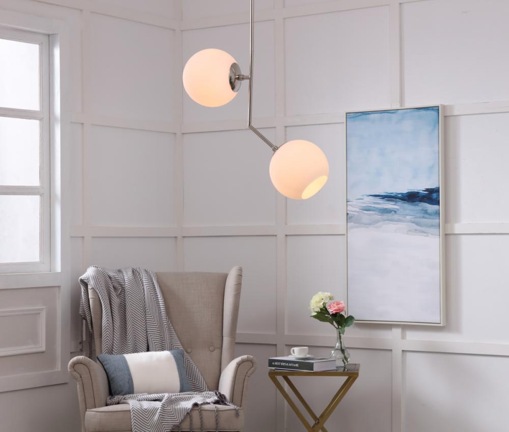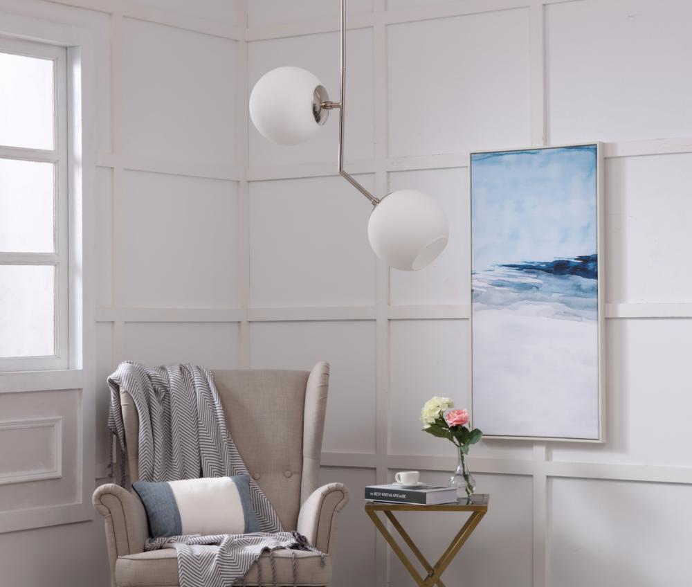 The Ryland Collection Pendant adds sophisticated elegance while still maintaining playful whimsy. The clean lines of the adjustable rod supports the lights that are enclosed within the white frosted ball shades. Available in a brass, chrome, and two-toned black and brass finish, this fixture will add contemporary freshness to any room, your guests sure to notice your impeccable tastes in design (light bulbs not included).