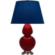 Sangria Glazed Ceramic with Antique Silver Finished Accents Double Gourd Table Lamp with Bright Blue Fabric Shade with Gray Lining - Our Double Gourd collection features a simple but gracefully curving silhouette. Available in a wide array of vibrant colors and several different base finishes.