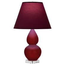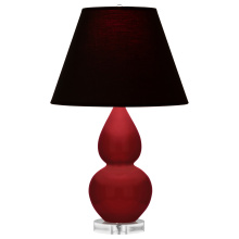 Sangria Glazed Ceramic with Lucite Base Small Double Gourd Accent Lamp with Bright Blue Fabric Shade with Gray Lining - Our Double Gourd collection features a simple but gracefully curving silhouette. Available in a wide array of vibrant colors and several different base finishes.
