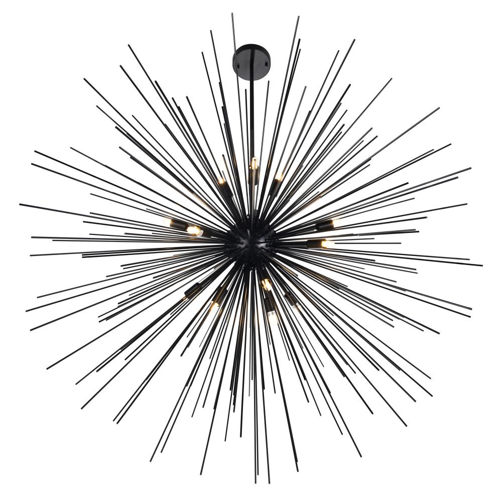 Add bold character to your space with the Savannah 14 Light Chandelier in a sleek black finish. Featuring a striking 40-inch diameter starburst design, this chandelier makes a dramatic statement in any room. Perfect for creating a warm, captivating glow, its ideal for brightening up modern, minimalist spacesespecially when paired for double the impact.