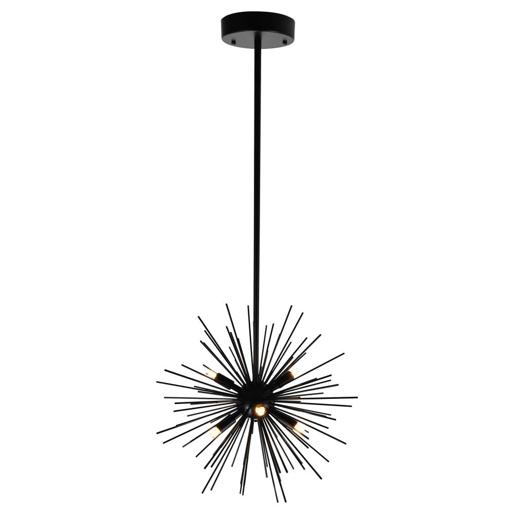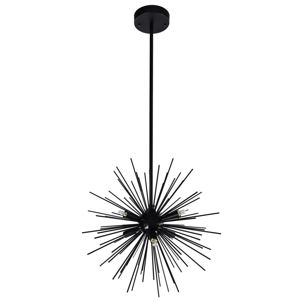 Add bold character to your space with the Savannah 6-Light Chandelier in a sleek black finish. Featuring a striking 16-inch diameter starburst design, this chandelier makes a dramatic statement in any room. Perfect for creating a warm, captivating glow, its ideal for brightening up modern, minimalist spacesespecially when paired for double the impact.