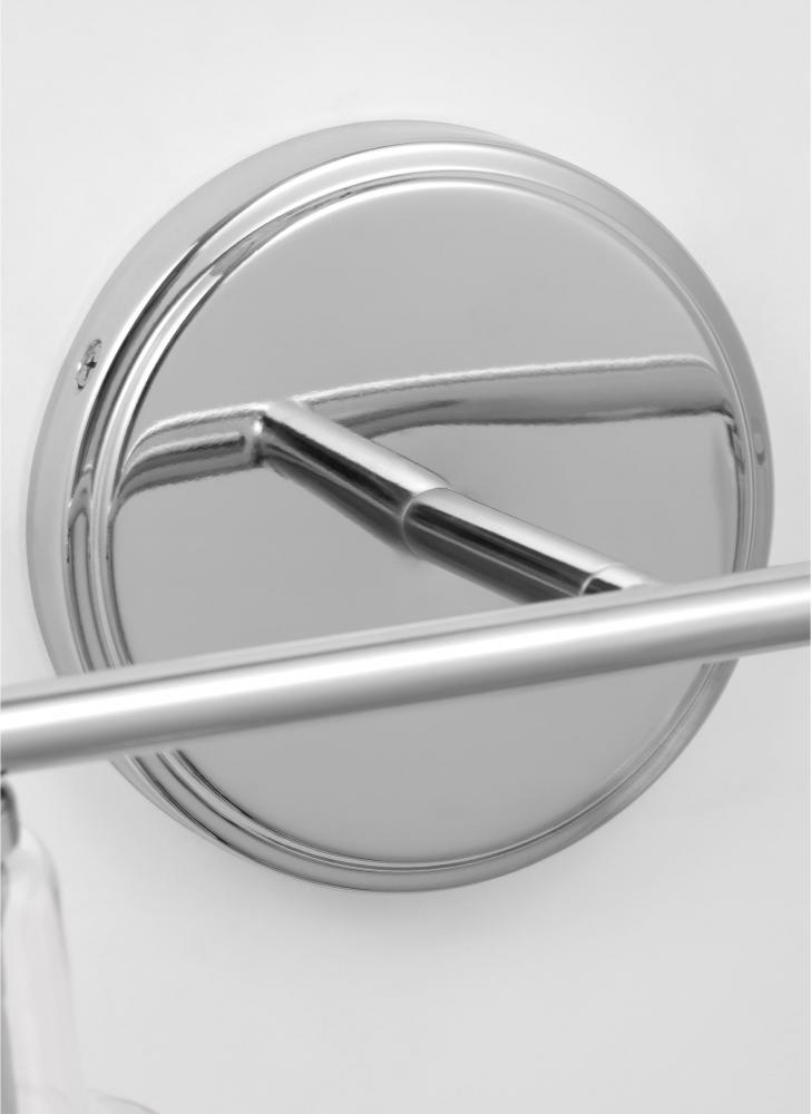 Add a bright burst of light where you need it most with the classic Drew & Jonathan Sayward Two Light Wall / Bath Sconce, featuring a round metal backplate and clear glass shades. Made to coordinate across a broader range of bath hardware and design styles, the Sayward is available in four popular finishes, Brushed Steel, Chrome, Midnight Black, and Satin Brass. This light looks great on its own or installed above a bathroom vanity, and the glass shades make it ideal for filament bulbs. This fixture may be mounted in the up or down position, and is cETL listed for damp locations, making it the perfect lighting solution for any space.