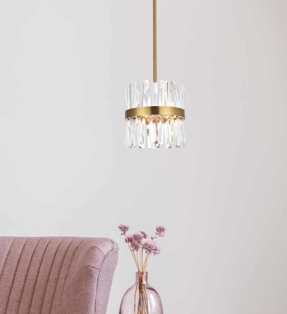 Serephina 12 inch crystal round pendant light in satin gold