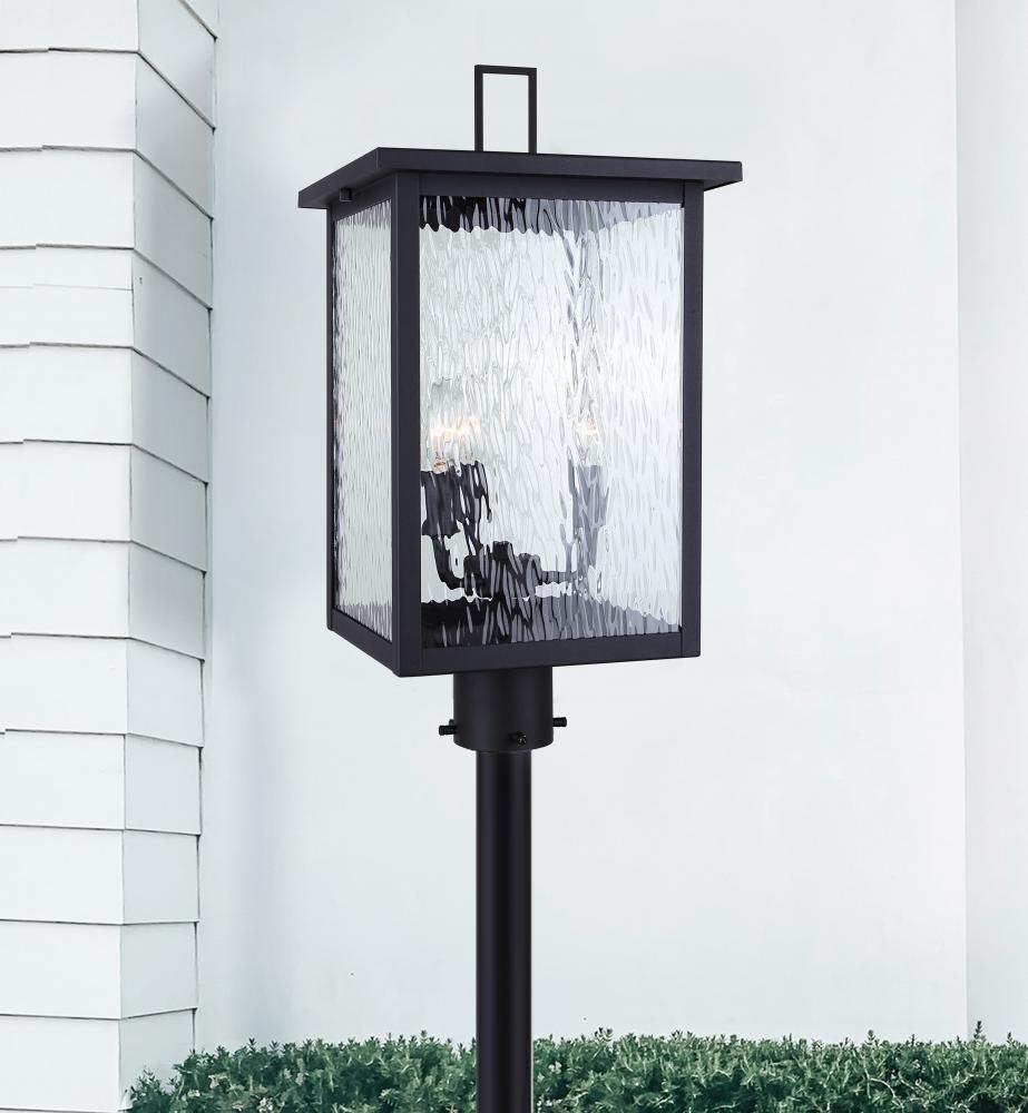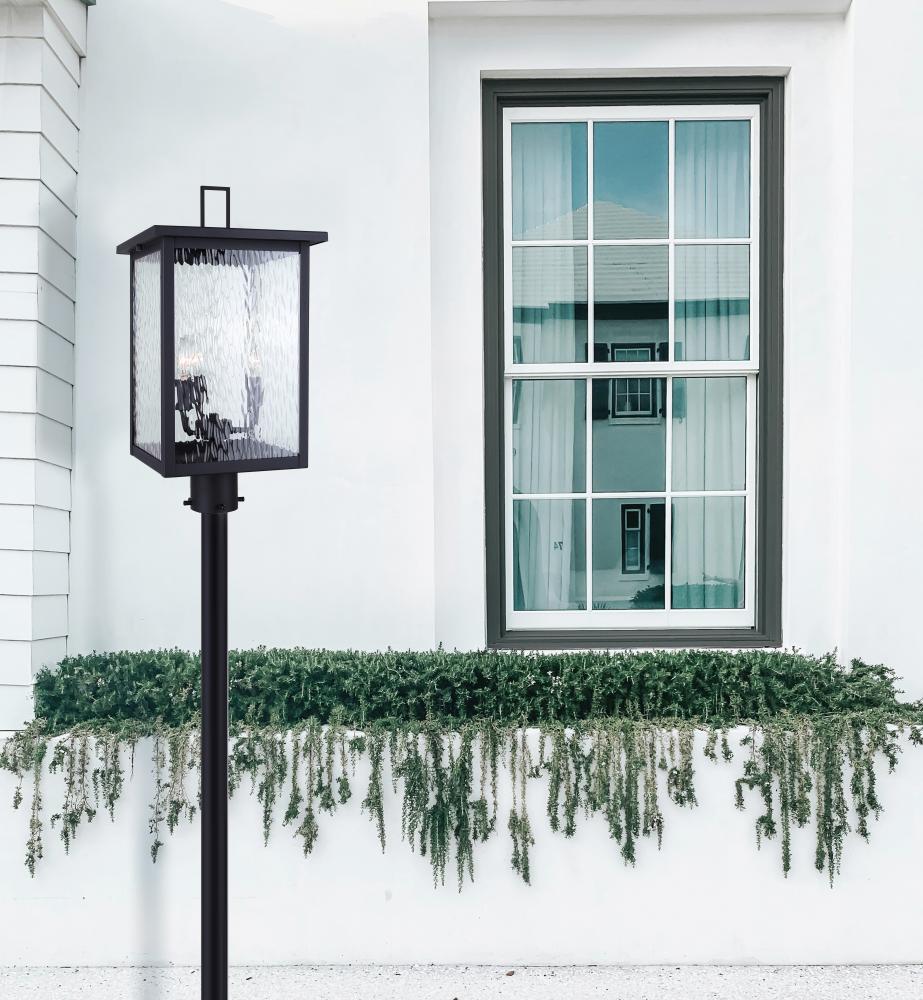The Shana outdoor post light is a sleek and sophisticated addition to your outdoor space. Perfect for illuminating entrances or patios, this modern fixture brings both style and functionality to your home. The clean rectangular design of Shana adds a touch of contemporary flair, while its seeded glass panels and sleek black finish create a warm and inviting ambiance.