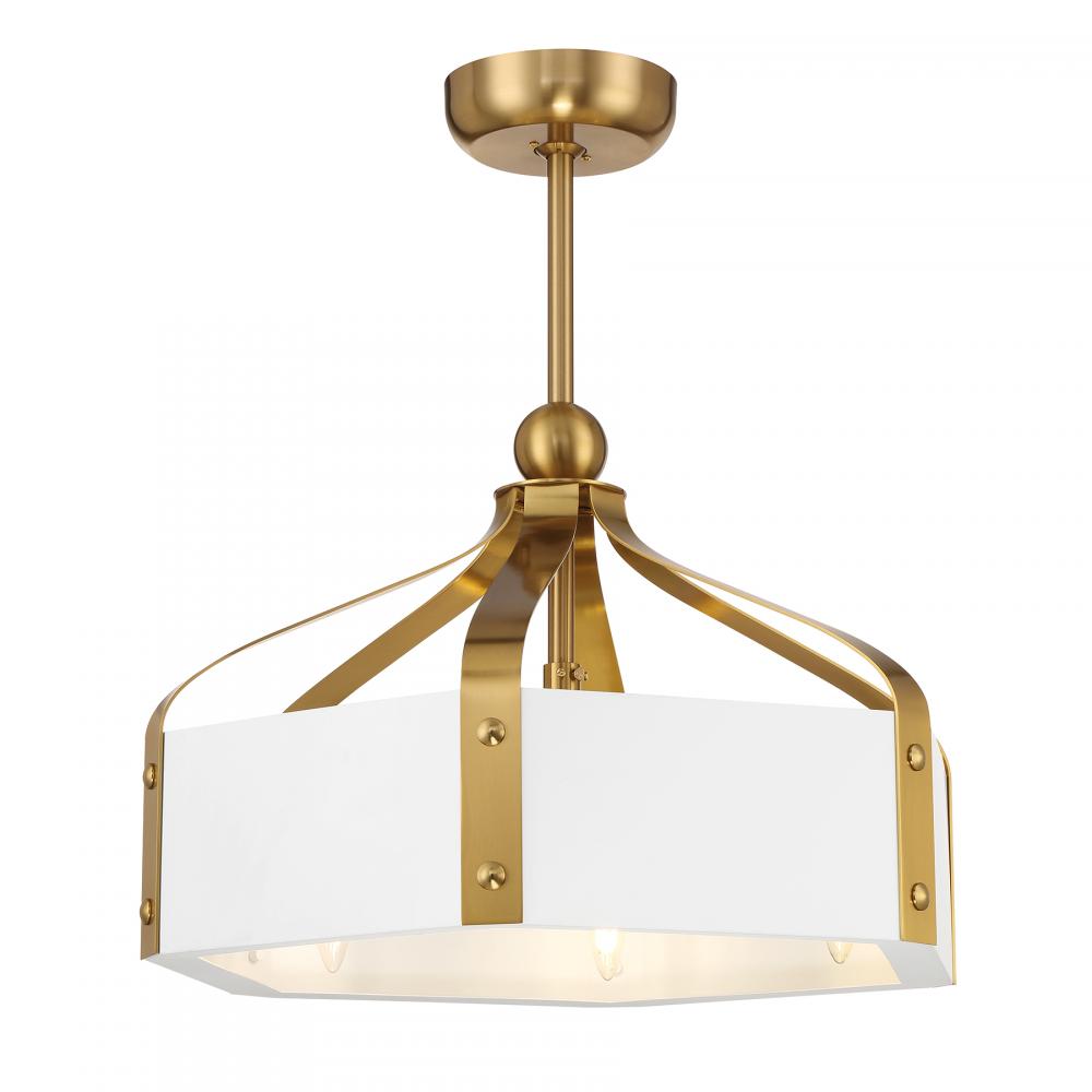 The Savoy House Sheffield 6-light Fan D'Lier offers up a beautiful, elegant and classic look with a lantern-like style and a White finish with Warm Brass accents. It is 27.75" in height and 26" in width. Uses six candelabra size bulbs of up to 60 watts per bulb. LED bulbs are included.