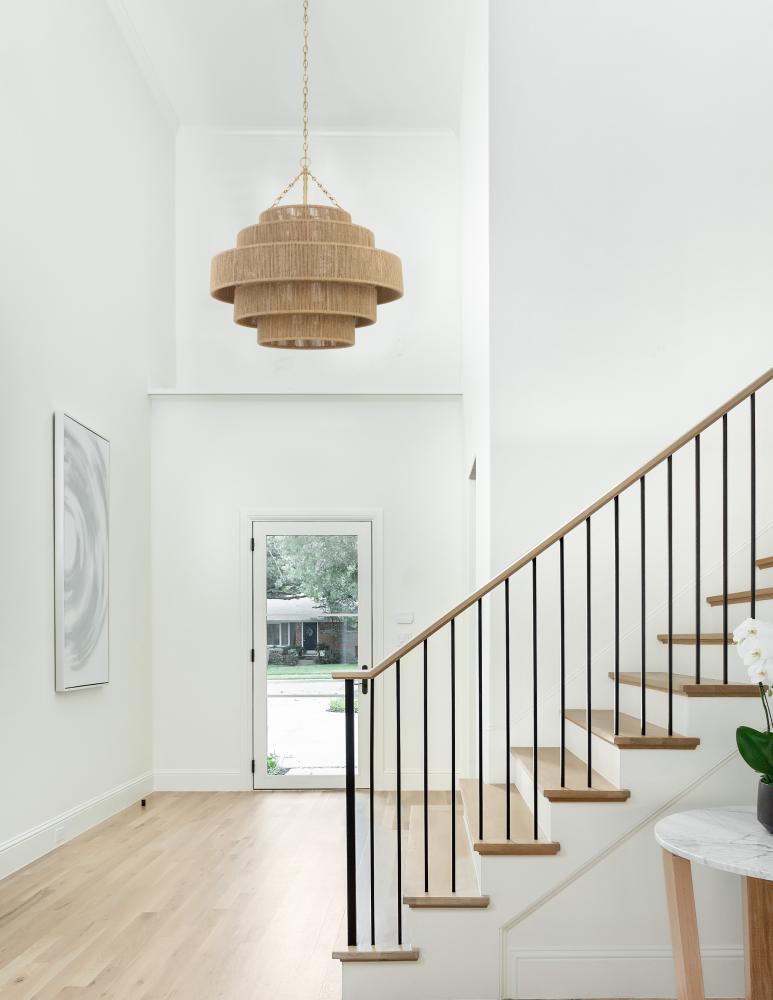 The Shyla Chandelier is a stunning blend of form and function. Crafted with modern sensibilities in mind, it features a tiered jute design and a gold chain adorned with oval and round details. The jute-wrapped structure adds a textural element, creating a relaxed and refined ambiance. With a warm and cozy glow, it is the perfect lighting solution for various interior styles, thanks to its simple and versatile design.