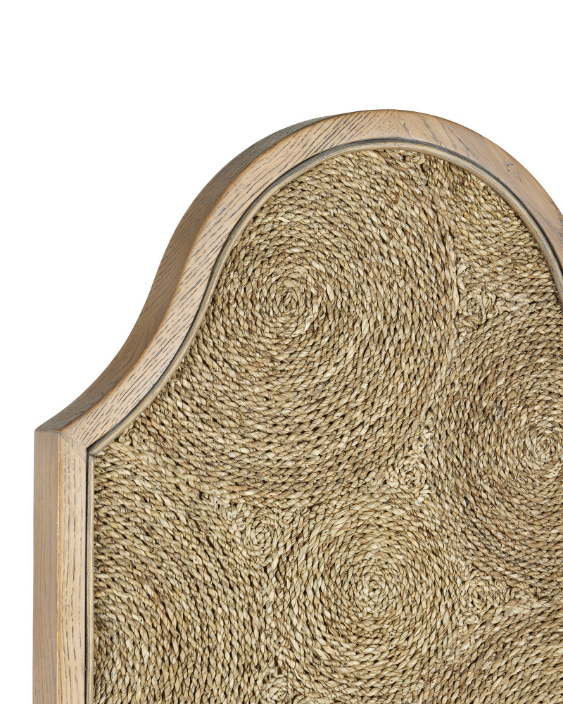 Diligent concentration and a talent for uniformity are imperative for the Sisal Screen to come to life because the construction requires that pandan leaves are twisted into rope and affixed to a solid oak frame in a swirl pattern. The way the circlets are organically placed enhances the textural feel of this neutral accent. The screen is finished on both sides and the hinges are dual action so they can move in both directions. The scalloped top is a design detail that will bring artfulness to the room in which it is placed. This earthy design, named for the port city in the Yucatan, is in the Marjorie Skouras Collection.