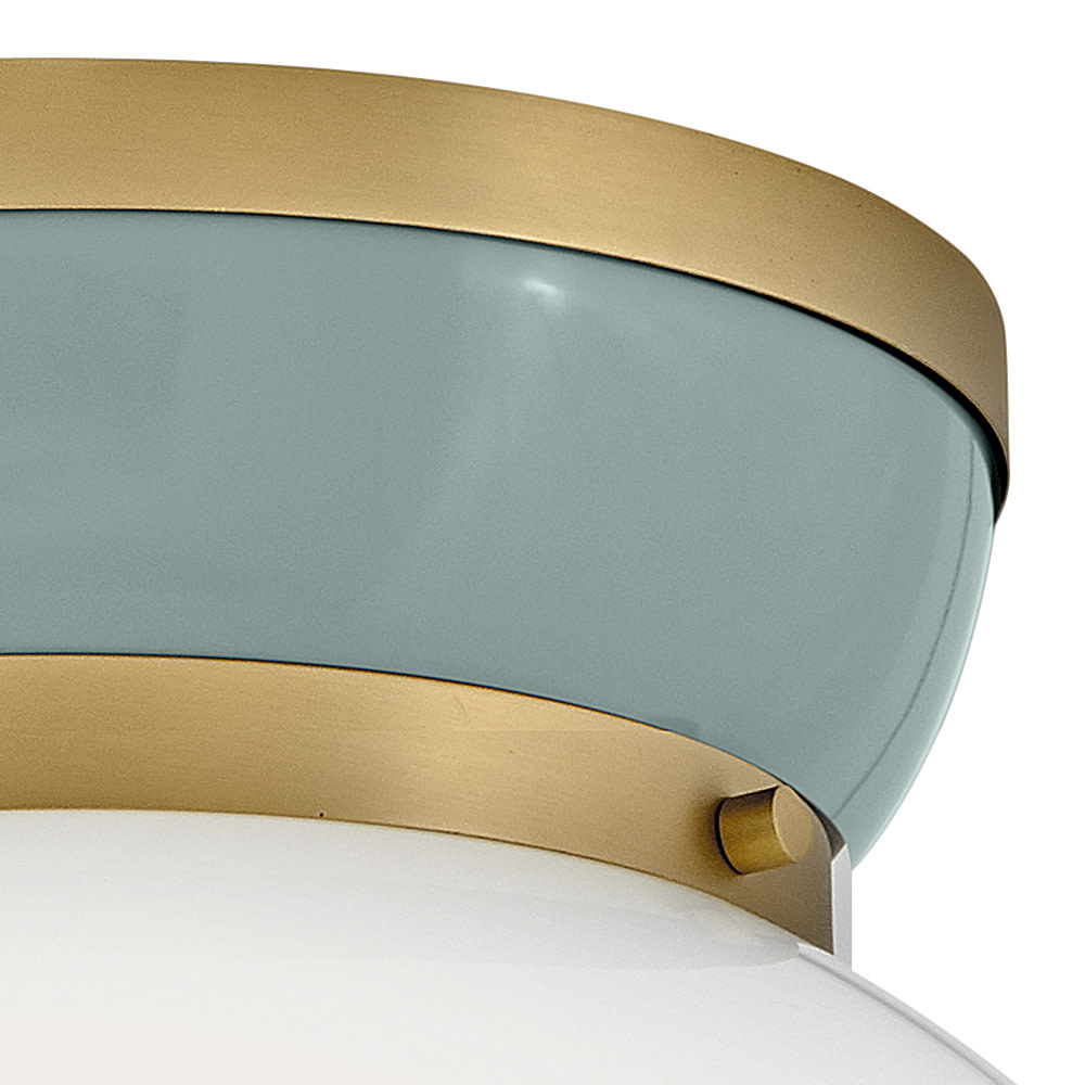 Lucy is a petite beauty that packs a big punch. The curved lines and captivating color combinations are like a whirlwind romance with classic style. The schoolhouse modern shade and bands of Lacquered Brass finish off the timeless love story with a softness that fits in any space or place.
