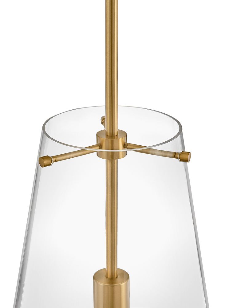 Beck's transitional style is reinforced by a smooth Lacquered Brass or Black finish paired with an etch-dipped glass shade offering texture and visual interest.