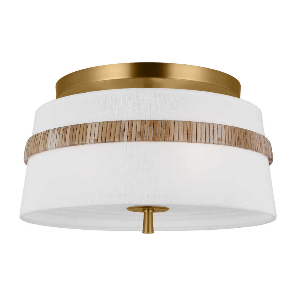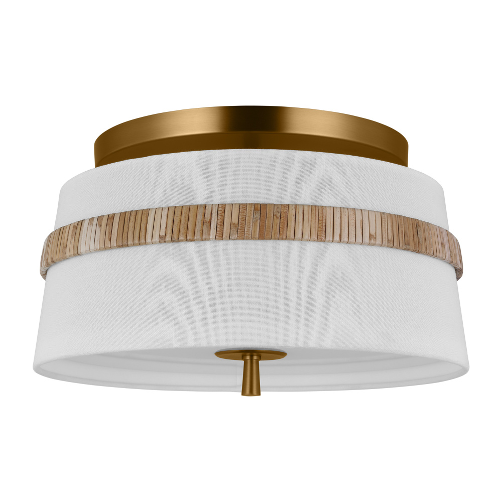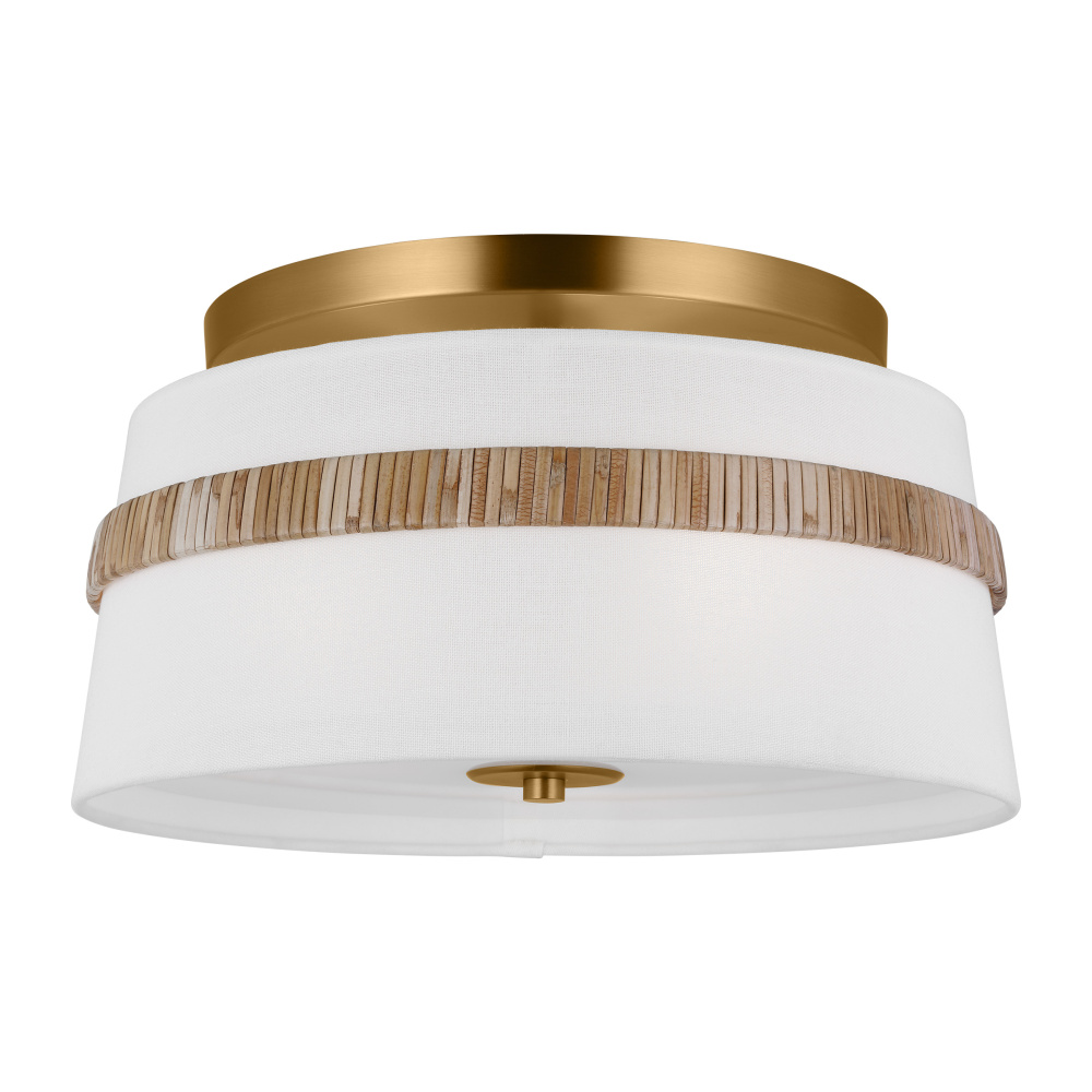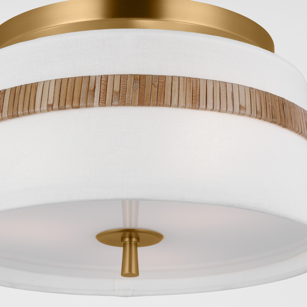 The Cordtlandt series by Alexa Hampton has a simple, purposeful design, making it a perfect addition to any uptown chic décor. The round-shaped flush mount features an etched glass diffuser and a decorative end stem that ties the look together. Updated with a rattan woven ring detail elevates the design with a coastal vibe.