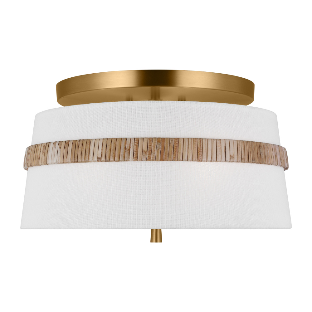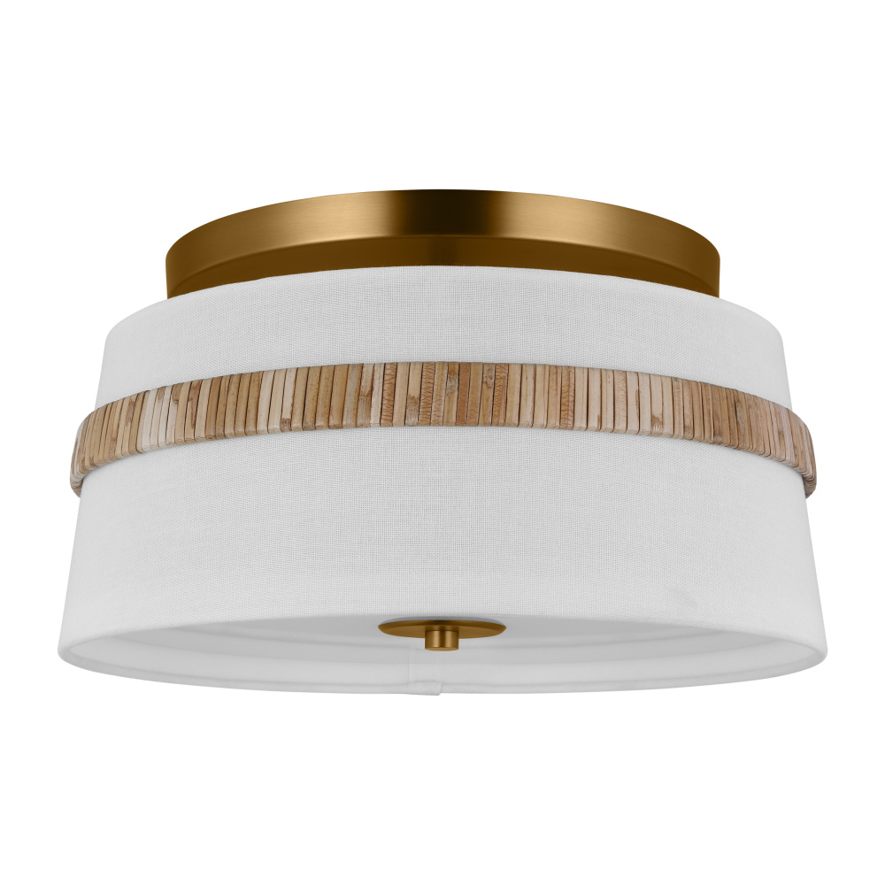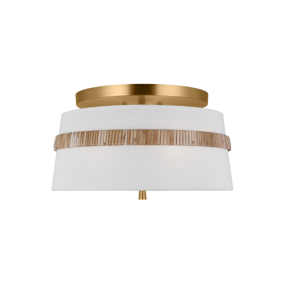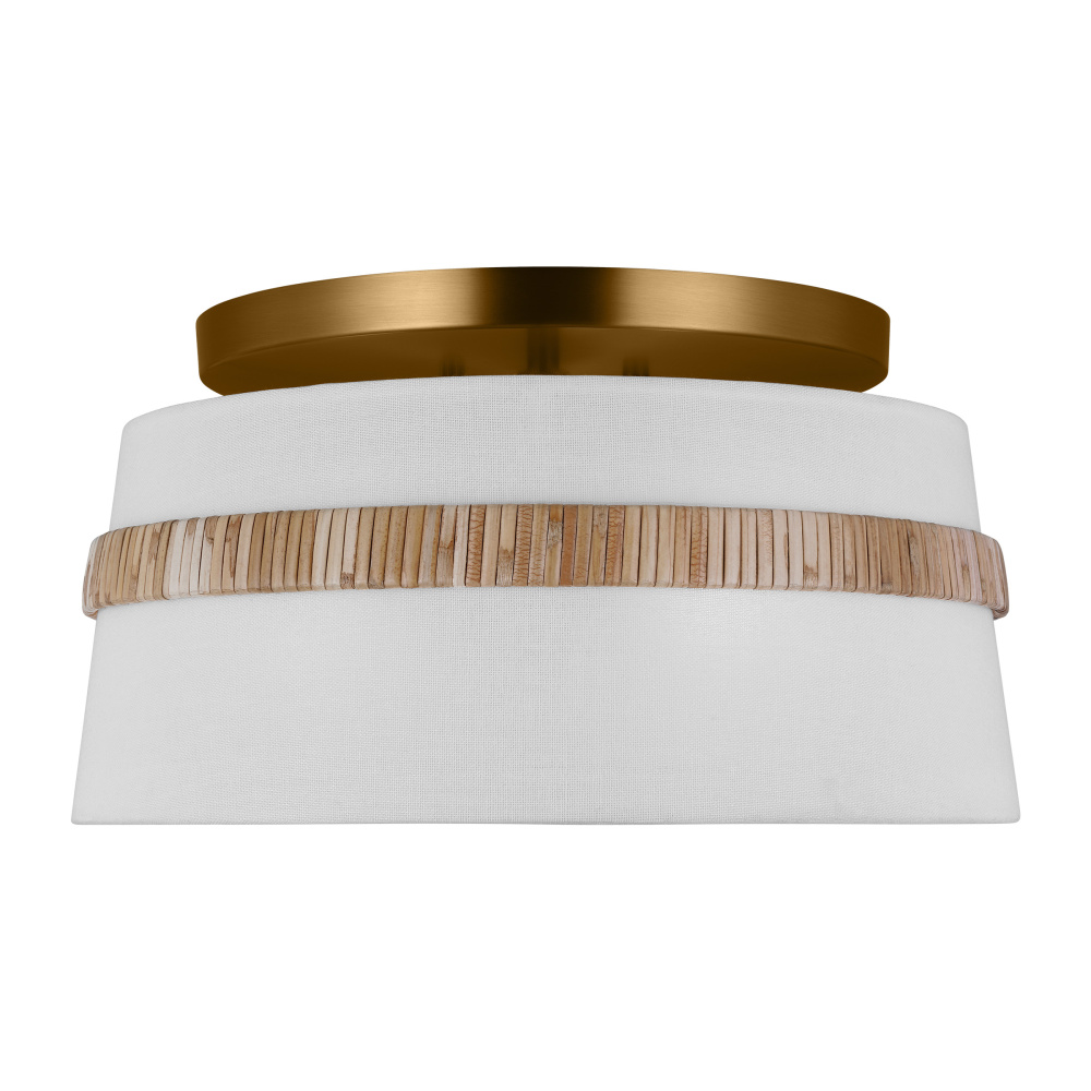 The Cordtlandt series by Alexa Hampton has a simple, purposeful design, making it a perfect addition to any uptown chic décor. The round-shaped flush mount features an etched glass diffuser and a decorative end stem that ties the look together. Updated with a rattan woven ring detail elevates the design with a coastal vibe.