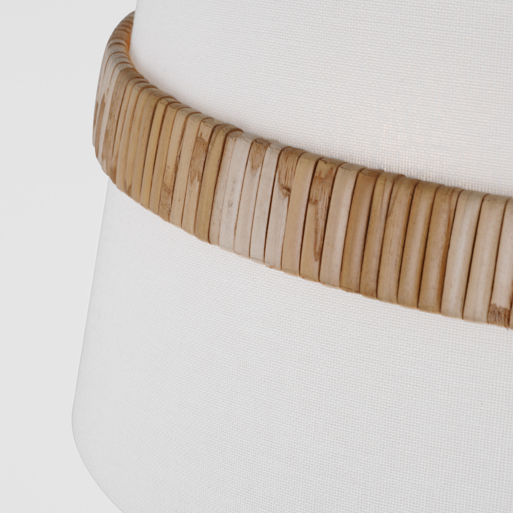 Features a decorative fabric shade and option to feature with or without rattan finial