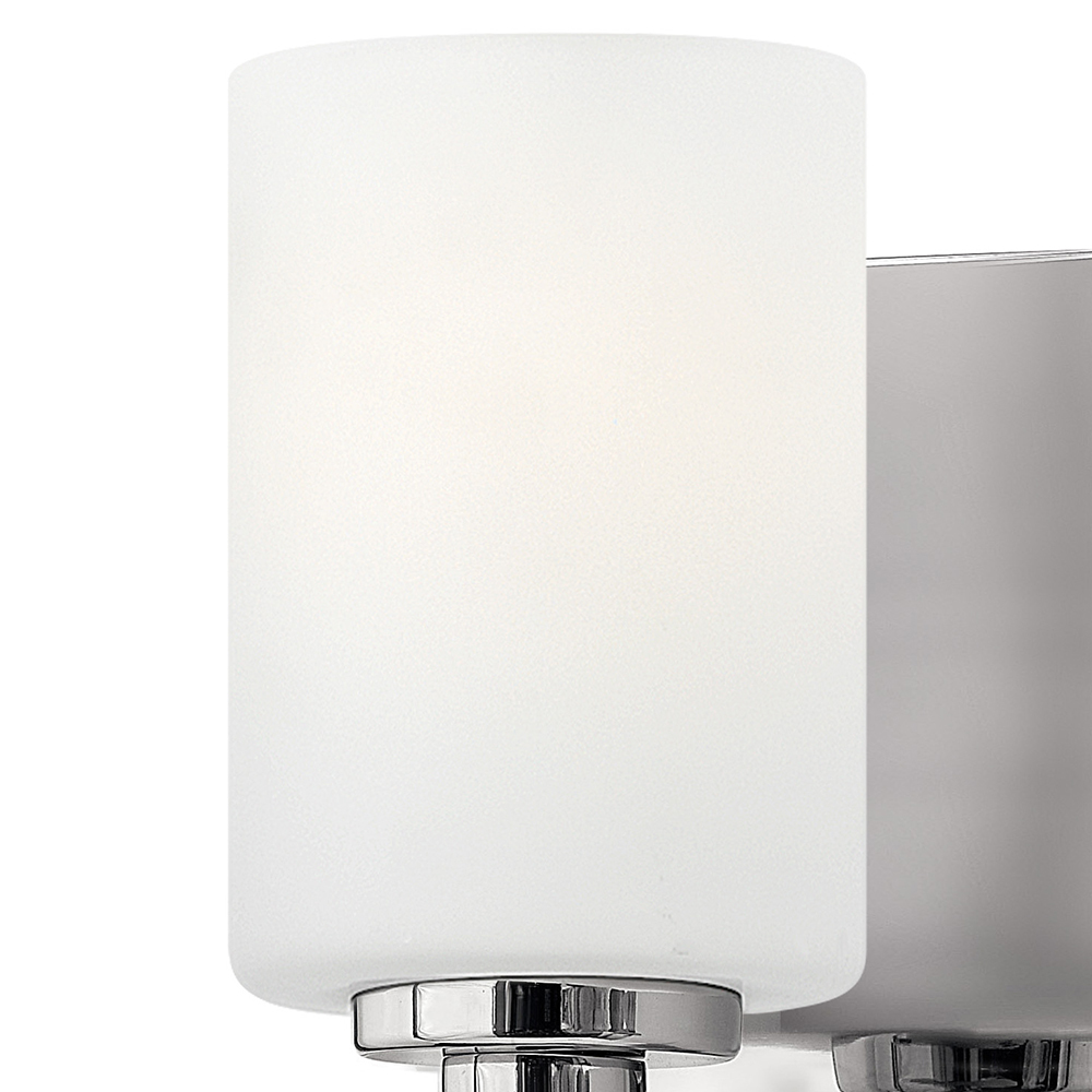Karlie's clean design is transitional in style and will complement a variety of décor. Featuring precision die-cast cups and cylindrical, etched opal glass, it is available in Brushed Nickel and Chrome.