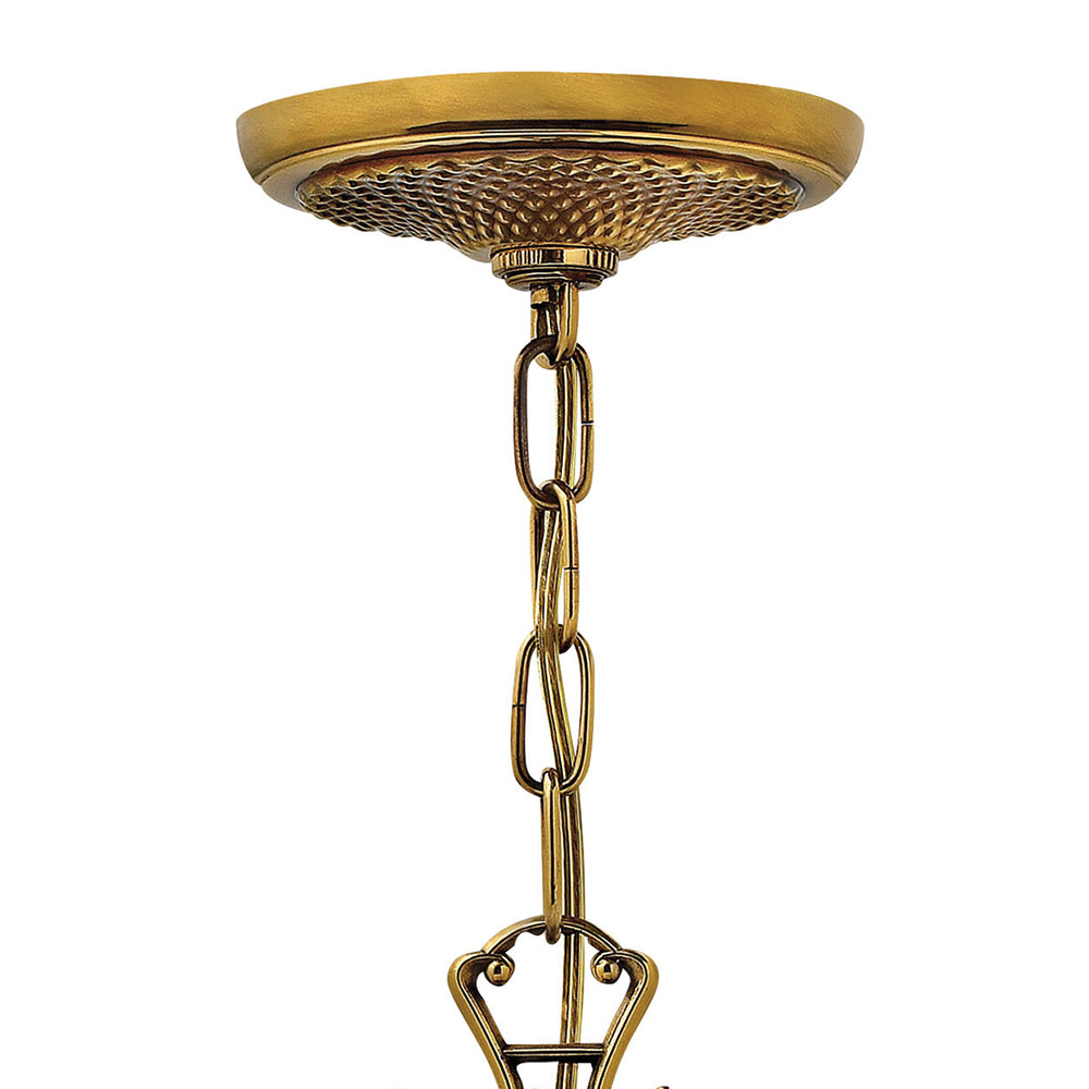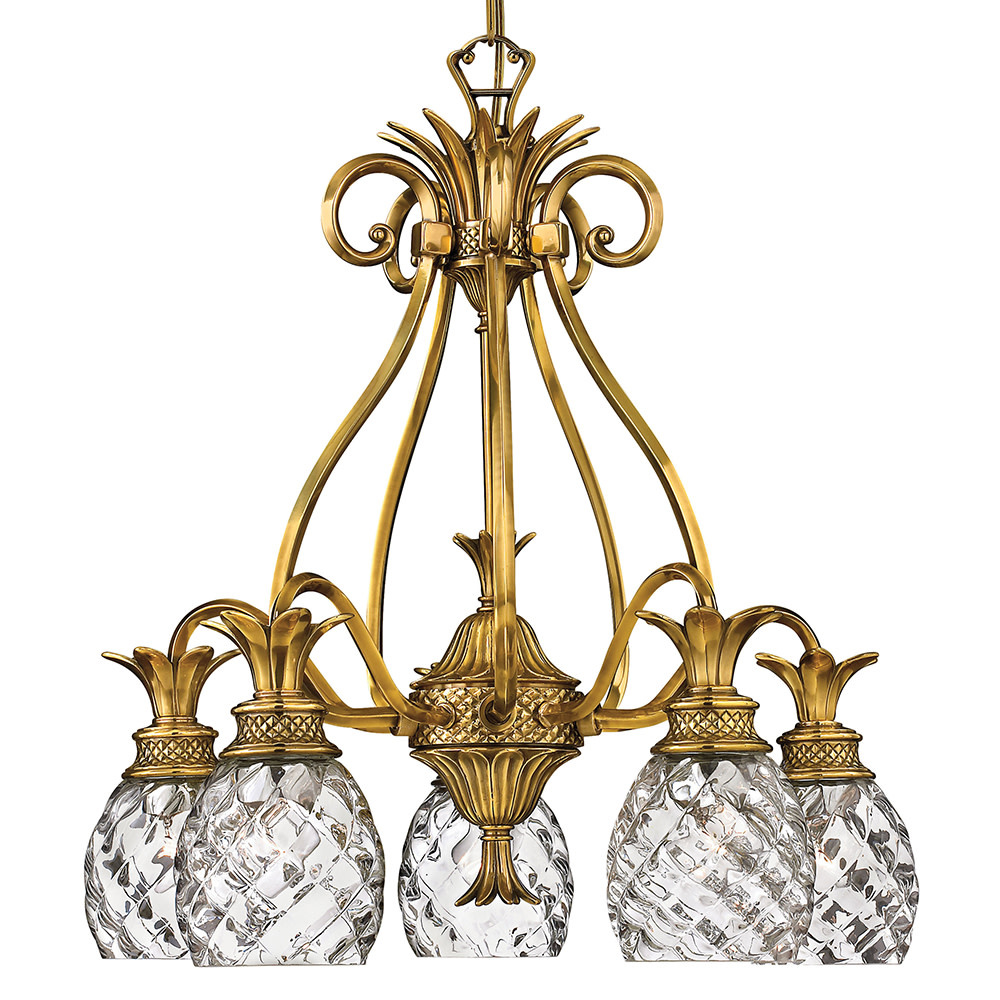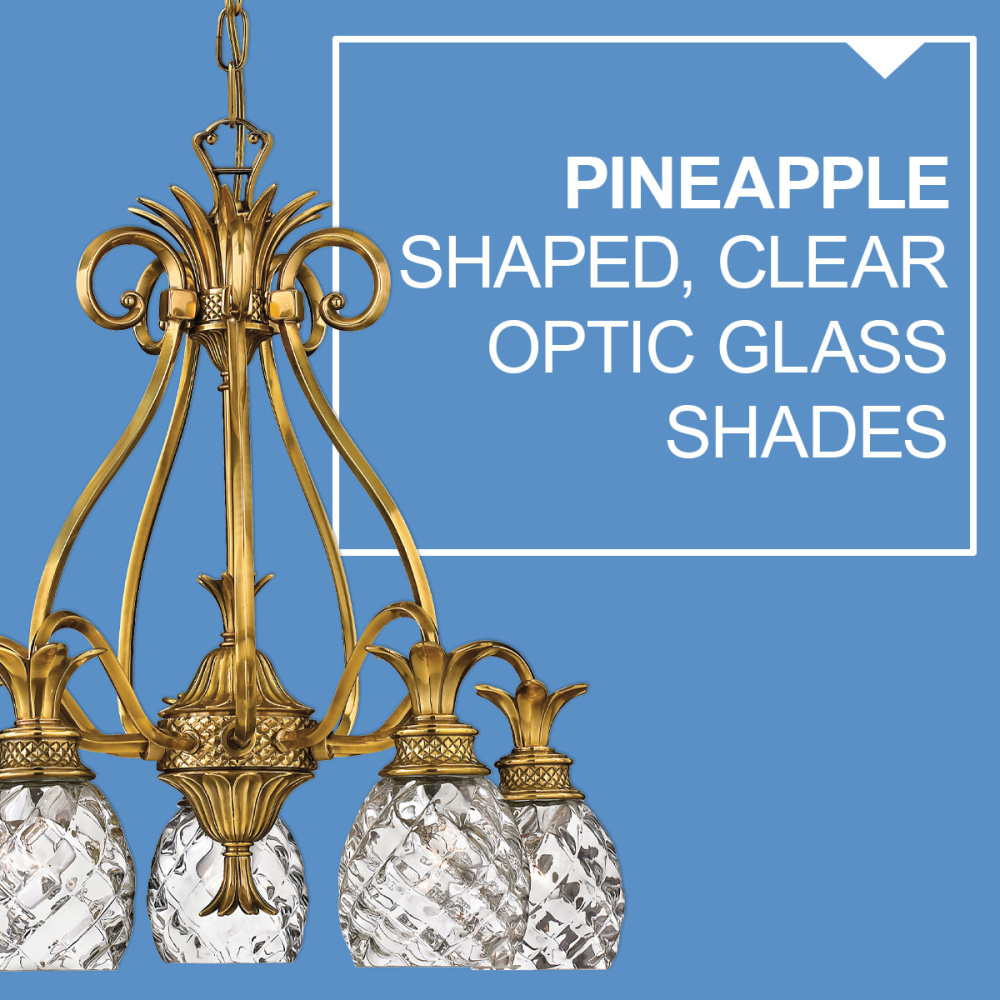A Hinkley classic, the ornate Plantation collection features exceptional pineapple shaped, clear optic glass that makes a noble statement. The elaborate, decorative cast detailing is accentuated by its lush finish.
