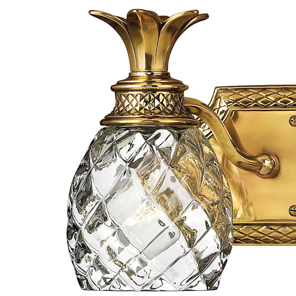 A Hinkley classic, the ornate Plantation collection features exceptional pineapple shaped, clear optic glass that makes a noble statement. The elaborate, decorative cast detailing is accentuated by its lush finish.