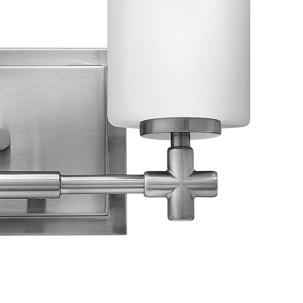 Laurel's appealing form combines both traditional and transitional design elements. Available Brushed Nickel, and features etched opal glass shades and medium base bulbing. Chic details, such as a precision die-cast cross reminiscent of a timeless faucet handle, and a cast stepped backplate, convey a lasting elegance.