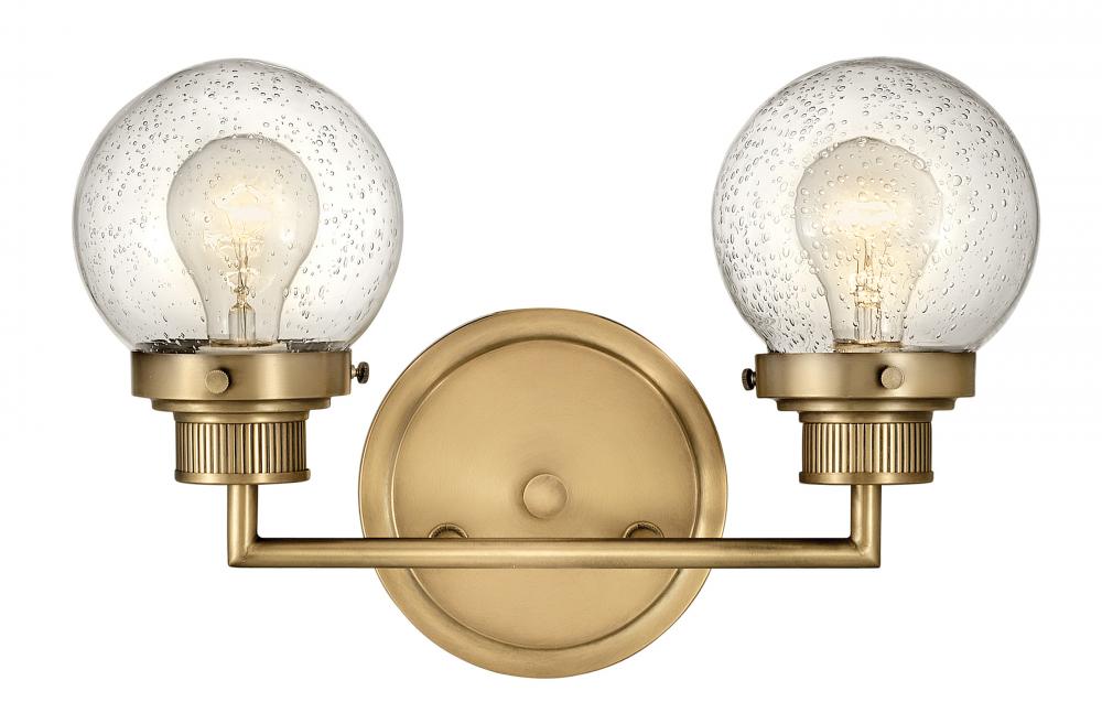 Poppy features clear glass spheres that bubble out of the refined, ribbed Chrome or Heritage Brass fitters to create a simple, yet sophisticated silhouette. An elegant, stepped backplate and crisp crossbar anchor this airy design. Poppy showcases mid-century style with a spectacular spin.