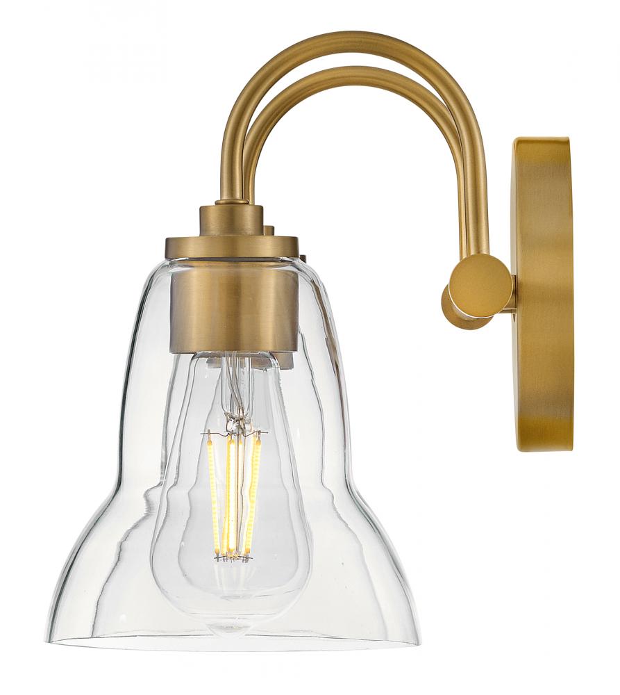 Vera’s unique, shapely form takes the traditional bell-shaped shades to a new level. Plenty of light shines up or down from the clear glass, making it a functional choice for main baths and powder rooms alike. Finished in Black or Lacquered Brass, Vera’s chic profile brings transitional style to any space.
