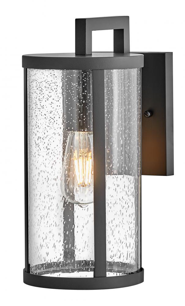 Alfie boosts curb appeal with effortless style. This transitional wall mount lantern features an easy-on-the-eyes cylindrical profile, bold Black metal frame and sizable clear seedy glass finessed to flatter any exterior. Pro tip: we recommend vintage filament bulbs to make Alfie really shine.