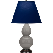 Smokey Taupe Glazed Ceramic with Deep Patina Bronze Finished Accents Double Gourd Table Lamp with Bright Blue Fabric Shade with Gray Lining - Our Double Gourd collection features a simple but gracefully curving silhouette. Available in a wide array of vibrant colors and several different base finishes.