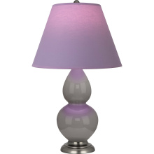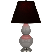 Smokey Taupe Glazed Ceramic with Antique Silver Finished Accents Small Double Gourd Accent Lamp with Bright Blue Fabric Shade with Gray Lining - Our Double Gourd collection features a simple but gracefully curving silhouette. Available in a wide array of vibrant colors and several different base finishes.