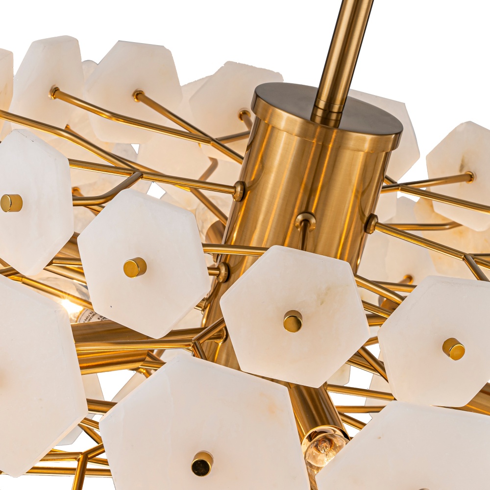 The Solenne Collection captures the serene beauty of alabaster and the quiet strength of sculptural design. Each piece features hand-carved hexagonal alabaster tiles arranged in a soft, radiant silhouette that glows with natural warmth. Calm, elegant, and timeless, Solenne brings a gentle luminosity to any refined interior.