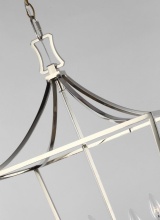 Southold by Chapman & Myers pairs curves and lines to form a classic geometric silhouette. This new, contemporary lantern has a thin frame that gives it an airy feel, paired with a tight hub for the candelabra. For a more modern look, try Southold in Polished Nickel. This lantern series will make any space well-lit and elegant.