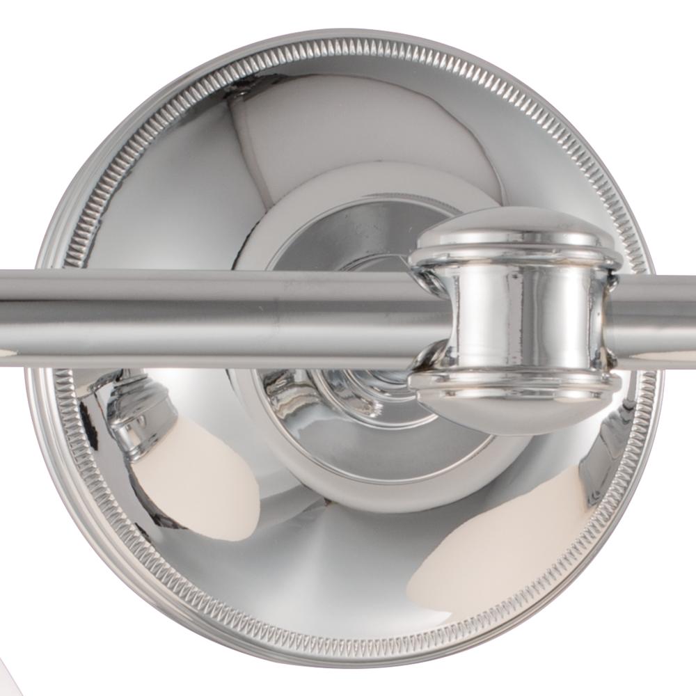 A beautiful knurled back plate and matching Opal glass holder make the Spencer series a popular bath lighting choice.