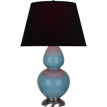 Steel Blue Glazed Ceramic with Antique Silver Finished Accents Double Gourd Table Lamp with Tea Green Fabric Shade with Taupe Lining - Our Double Gourd collection features a simple but gracefully curving silhouette. Available in a wide array of vibrant colors and several different base finishes.