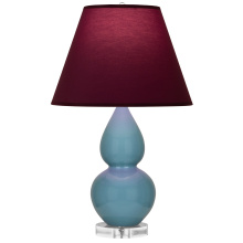 Steel Blue Glazed Ceramic with Lucite Base Small Double Gourd Accent Lamp with Tea Green Fabric Shade with Taupe Lining - Our Double Gourd collection features a simple but gracefully curving silhouette. Available in a wide array of vibrant colors and several different base finishes.
