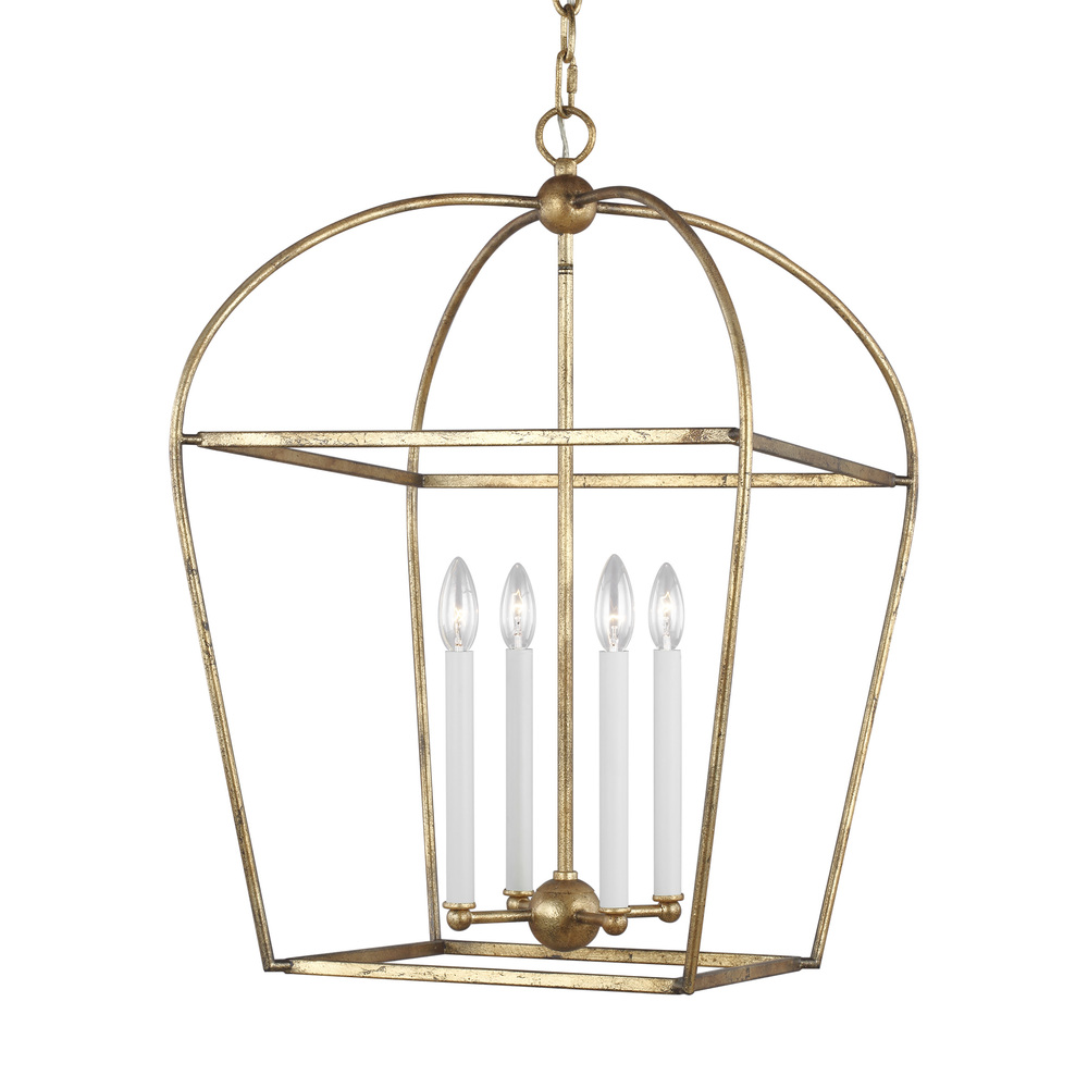 The Stonington four-light single-tier chandelier in antique gild provides abundant light to your home while adding style and interest. Chapman & Myers have paired back the plantation-style lantern to its basic form – removing the glass sides and any adornment. The antique gild frame gives it a more classic, elegant look. Find the height or width that best matches your space.