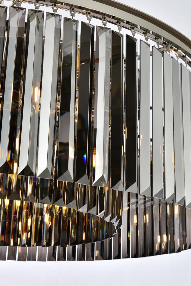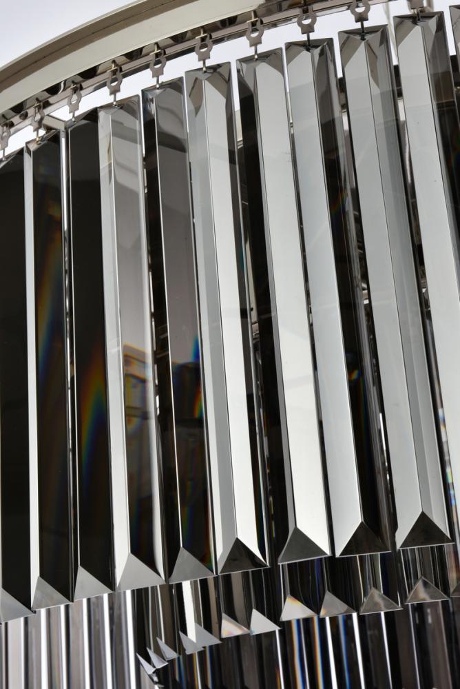 Bring the splendor of the ballroom into your home with a sparkling Sydney fixture. Stunning in foyers, dining rooms, or stairwells, the Sydney collection brings to mind the glamour of the Roaring Twenties. Features glimmering tiers of royal-cut clear, golden-teak, or Silver-shade crystals. In mocha-brown or polished-nickel finishes, this sturdy, yet delicate, chandelier will be the perfect centerpiece for any décor.