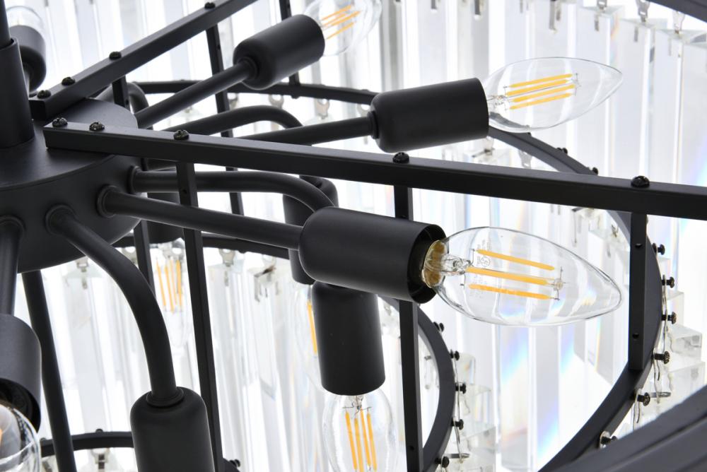 Bring the splendor of the ballroom into your home with a sparkling Sydney fixture. Stunning in foyers, dining rooms, or stairwells, the Sydney collection brings to mind the glamour of the Roaring Twenties. Features glimmering tiers of royal-cut clear, golden-teak, or Silver-shade crystals. In Matte Black or polished-nickel finishes, this sturdy, yet delicate, chandelier will be the perfect centerpiece for any décor.