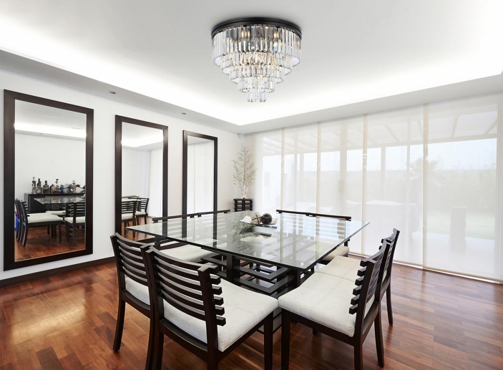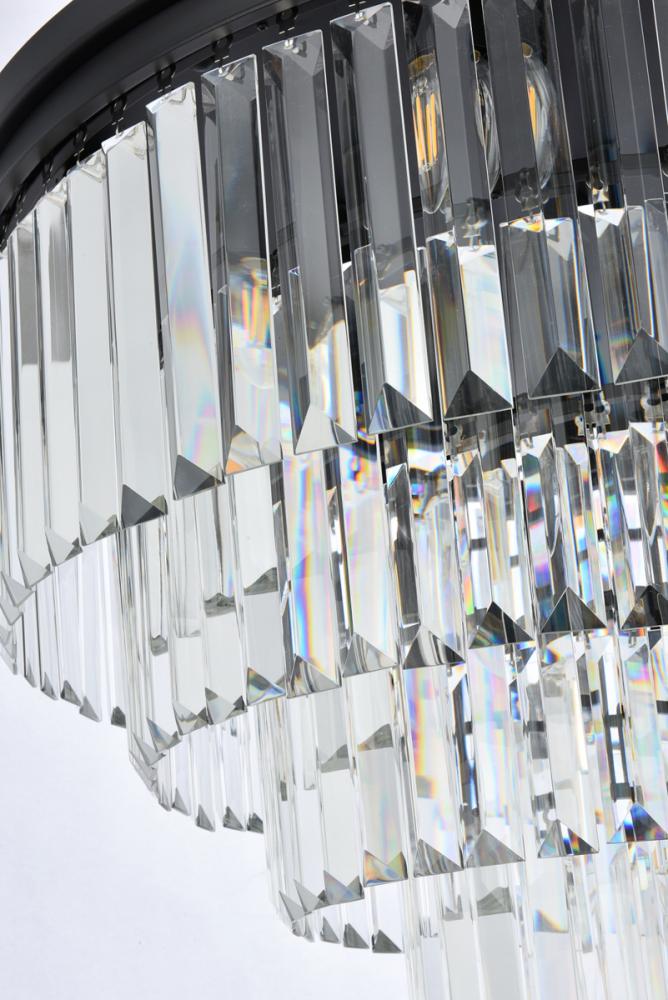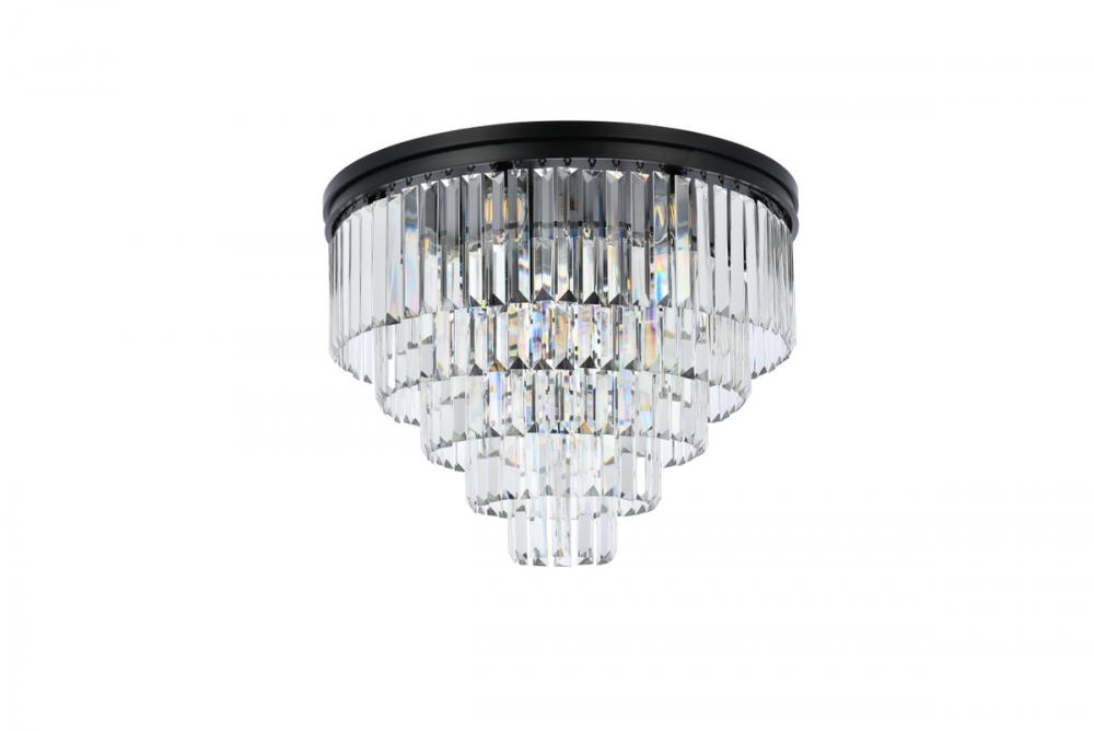 Timeless splendor and modern refinement are brought together in flush-mount Sydney fixtures. Dazzling in dining rooms, staircases, or hallways, the Sydney collection flaunts stunning tiers of royal-cut crystals in clear, golden teak, or Silver shade. A circular Matte Black or polished-nickel finished steel frame adds understated charm to this stunning flush-mount lamp.