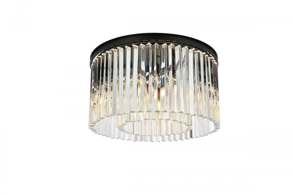 Timeless splendor and modern refinement are brought together in flush-mount Sydney fixtures. Dazzling in dining rooms, staircases, or hallways, the Sydney collection flaunts stunning tiers of royal-cut crystals in clear, golden teak, or Silver shade. A circular Matte Black or polished-nickel finished steel frame adds understated charm to this stunning flush-mount lamp.