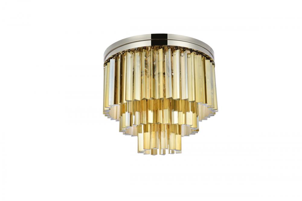 Timeless splendor and modern refinement are brought together in flush-mount Sydney fixtures. Dazzling in dining rooms, staircases, or hallways, the Sydney collection flaunts stunning tiers of royal-cut crystals in clear, golden teak, or Silver shade. A circular mocha-brown or polished-nickel finished steel frame adds understated charm to this stunning flush-mount lamp.