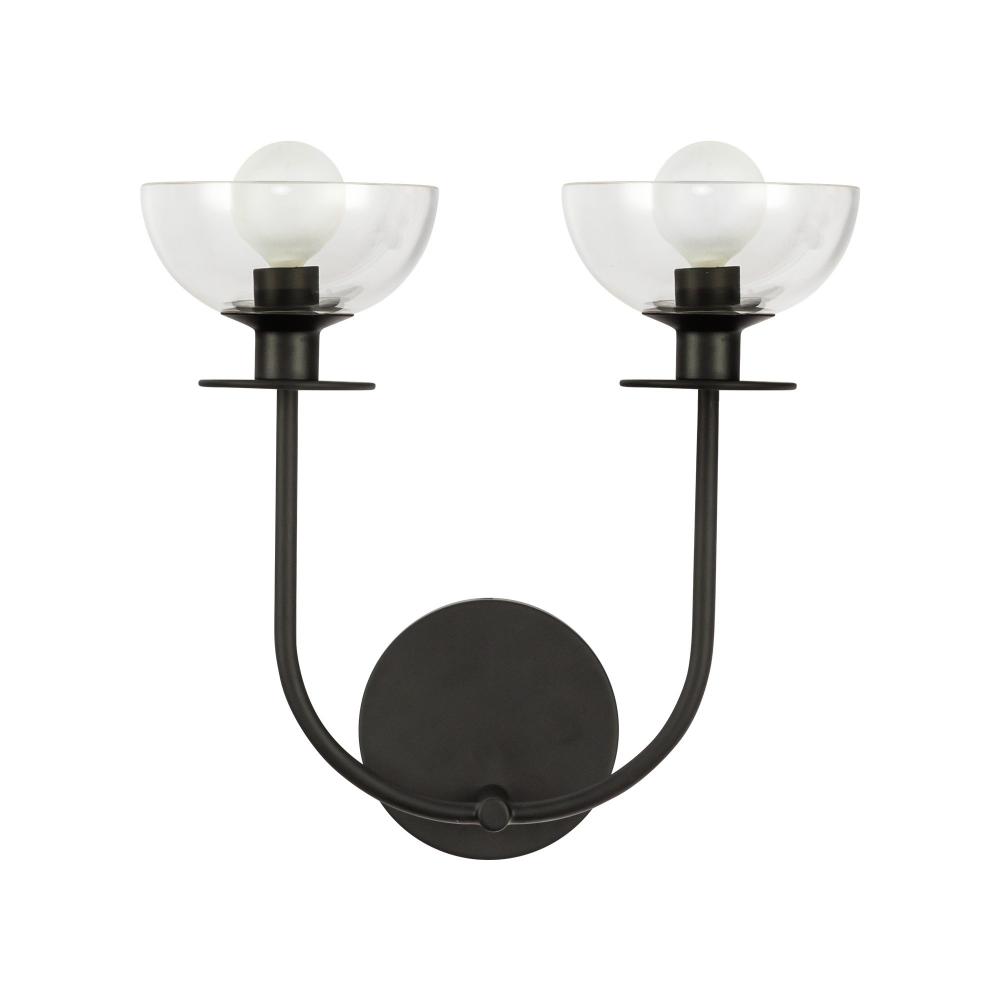Sylvia 12-in Matte Black/Clear Glass 2 Lights Wall Vanity