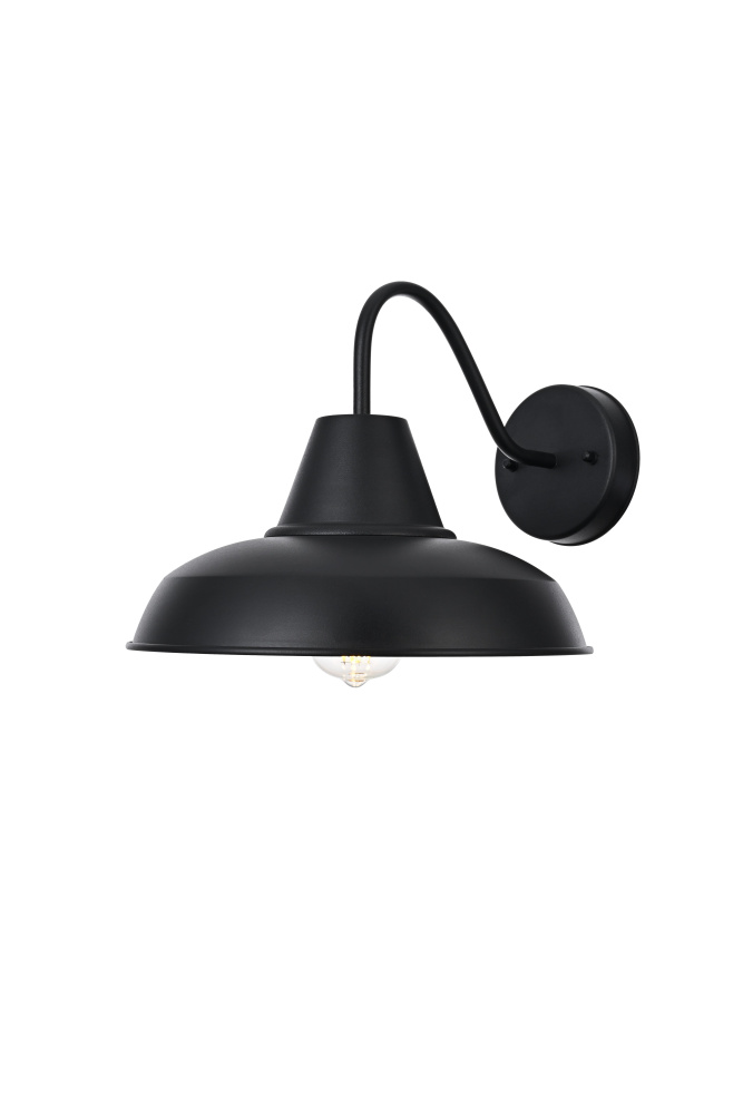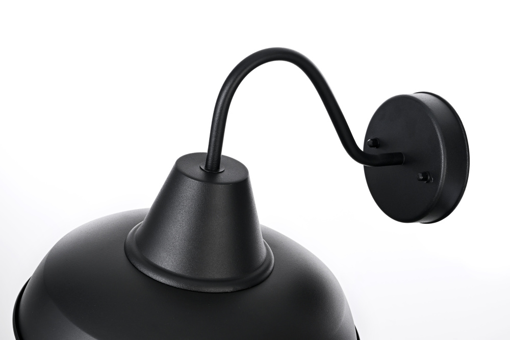 This outdoor wall light brings a timeless barn-style aesthetic to exterior spaces, featuring a flared metal shade, curved gooseneck arm, and contrasting black-and-gold finish. The wide metal shade directs light downward, while the gold interior enhances brightness with a warm, reflective glow. Built from sturdy iron, this fixture is ETL Wet Rated for durability in porches, patios, garages, and farmhouse exteriors. The compact 5-inch round backplate provides a secure mount, and the dimmable functionality allows for adjustable brightness when paired with a compatible dimmer. Designed for a medium-base E26 bulb (not included), this fixture blends practical lighting with industrial character, making it a strong and stylish addition to any outdoor space. Built with marine-grade, corrosion-resistant aluminum, this sconce withstands coastal conditions for long-lasting durability.