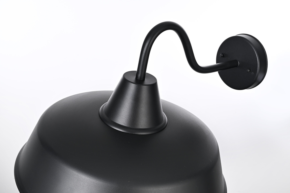 Features a wide, flared metal shade with a curved gooseneck arm, inspired by classic farmhouse and industrial lighting.