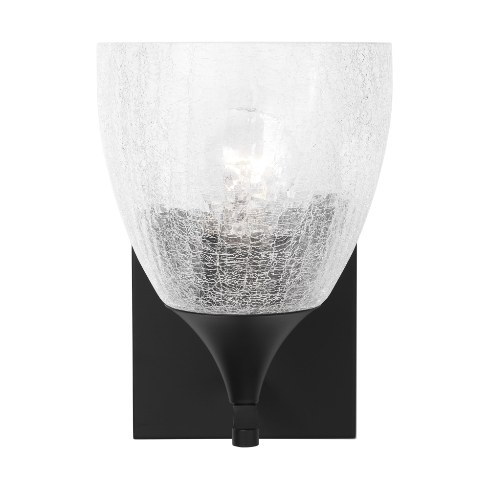Crafted with Steel in a Midnight Black finish with clear crackle glass shade