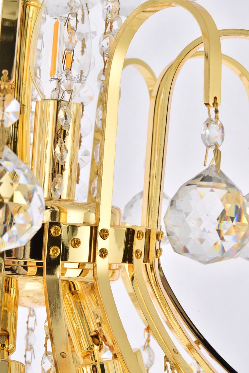 Lamp features a diameter of 19 inches, a height of 23 inches, and requires 10 candelabra bulbs