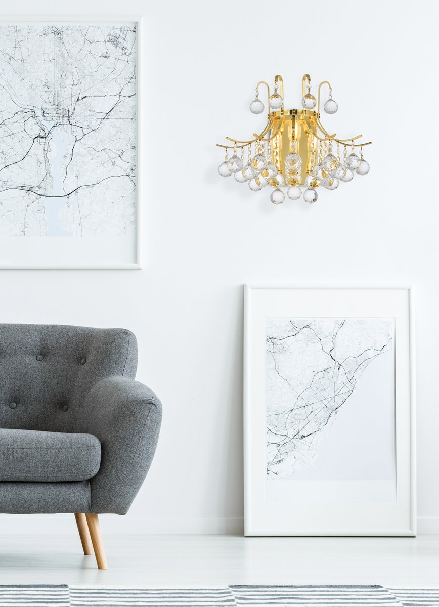 Jewelry for your walls, Toureg collection wall sconces bring the bling. Graceful steel arms curve from a steel frame and backplate available in chrome or gold finishes. Clear faceted crystal balls and a range of crystal octagon options dangle from every surface. The flawless adornment for a hallway, dining room, or living room.