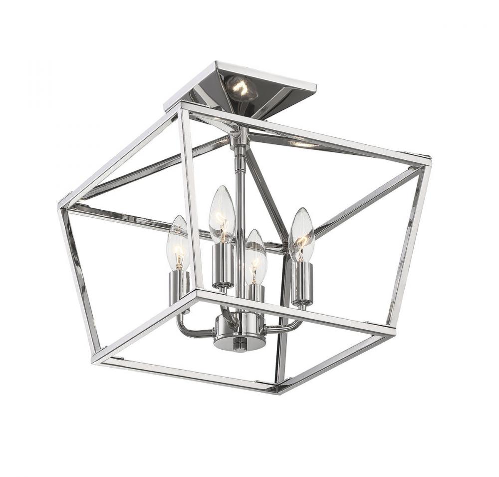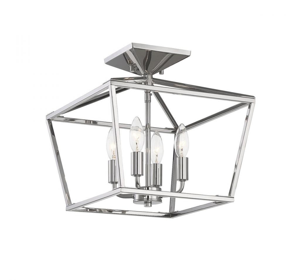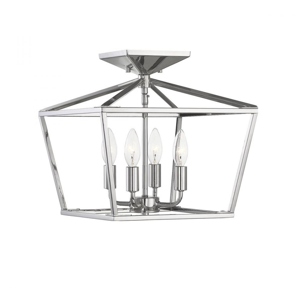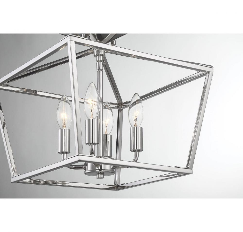 When you have a traditional aesthetic and want to inject a sense of modernism, choose this Townsend ceiling fixture. It’s a classic lantern style with the familiar vintage appeal of colonial or old English candle fixtures, but the open geometric frame and polished nickel finish create a delightful contemporary twist. This timeless quality blends very well with your traditional, transitional, bohemian, contemporary or modern farmhouse decor. Four lights within the open framework have metal candle covers and hold 60W candelabra size bulbs. The fixture is 13" wide and 13" high with a semi-flush mounting, making a superb fit for your dining room, kitchen, living room, entryway, bedroom, closet, family room, office, stairway or great room.