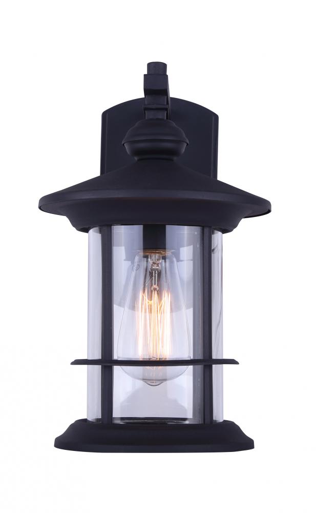 Illuminate your outdoor space with the Treehouse 1 Light Outdoor Lantern in a timeless Black Finish. Infusing rustic warmth into your surroundings, this lantern boasts a charming blend of classic design and modern functionality. Crafted with durable steel and aluminum diecast materials, it withstands the elements while exuding enduring elegance. The clear glass panels emit a soft, inviting glow, casting captivating patterns of light. Whether adorning your porch, patio, or garden, the Treehouse Lantern adds a touch of sophistication and ambiance to any outdoor setting.